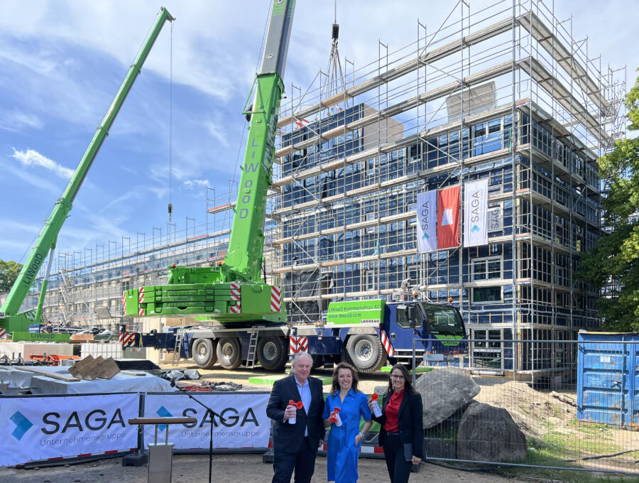 „Stapelfete“ für 142 öffentlich geförderte Wohnungen in Hamburg Horn.